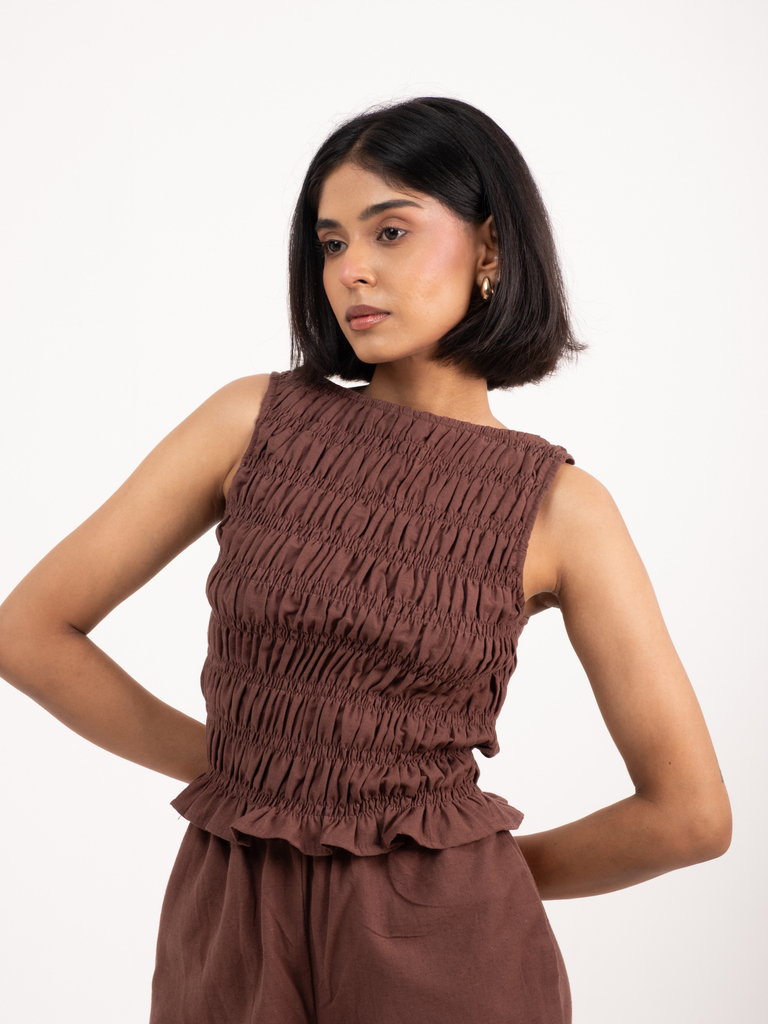 Discover the ultimate blend of comfort and style with our Espresso Top. Crafted from a luxurious blend of cotton and linen, this crop top offers a perfect fit t…