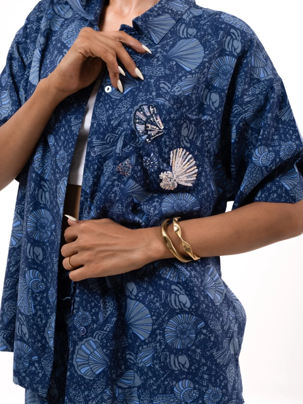 Step into the summer with our breezy rayon printed two-piece set. Perfect for vacations and casual outings, this co-ord set features a soft, shell embroidered pocket that adds a touch of elegance. The boxy fit ensures comfort and style, making it ideal for beachy sets and trendy summer fashion. Handcrafted with care, it's easy to maintain with a cold water wash and lay flat to dry.
