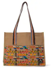Crafted from premium-quality fabric, this bag features vibrant colours and eye-catching prints accented by patterned edges for a quirky yet sophisticated look. With its spacious interior and sturdy build, the Thela is as functional as it is fashionable. Its front pocket lets you stash essentials like your phone or keys within easy reach, while the colourful design ensures you stand out wherever you go.