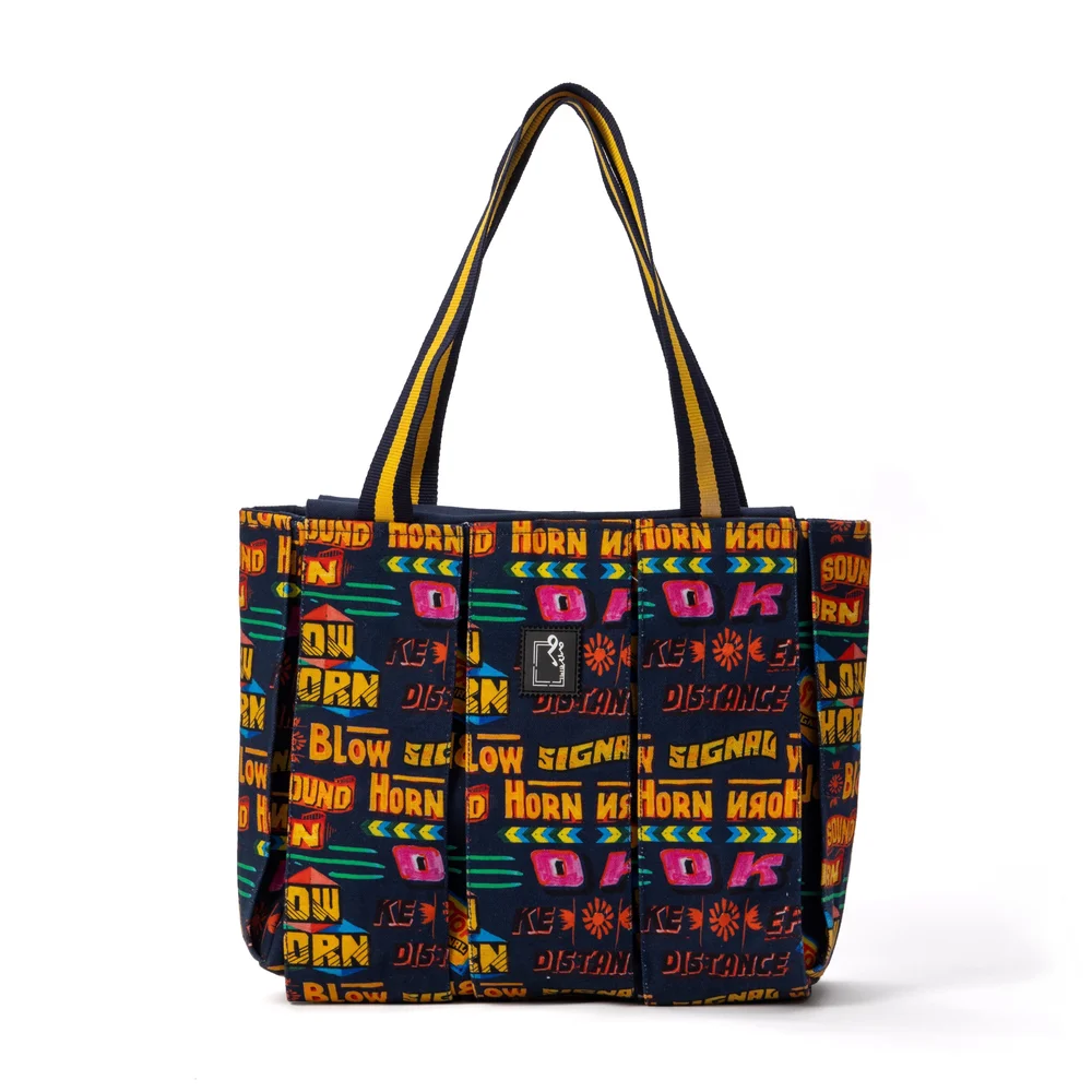Sleek, modern, and effortlessly versatile, this pleated tote bag is the ultimate everyday accessory. Designed with a minimalist design approach and accented by basic colours, vibrant prints and stylish striped handles, it combines functionality with understated elegance.