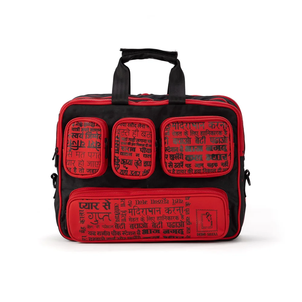 Make a bold statement with this utility-driven vegan leather convertible laptop bag inspired by the chaotic, colorful charm of Indian street walls.With prints straight out of local notice boards, hand-painted signs, and public graffiti, this unisex laptop bag is designed for those who stand out — not blend in.