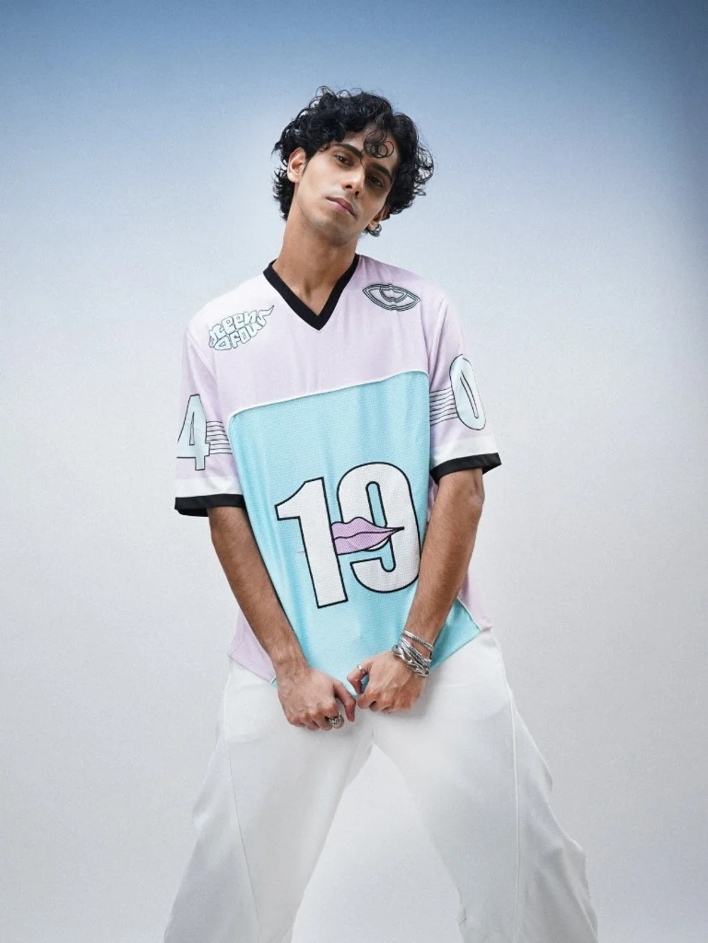 Step into effortless style with the 19O4 Jersey. This pastel-colored top features detailed appliqué patchwork and sublimation print across the front and back. Crafted from soft, lightweight polyester, it offers a relaxed fit with dropped shoulders. Perfect for casual outings or as a chic layer, this versatile piece is a must-have for your wardrobe.