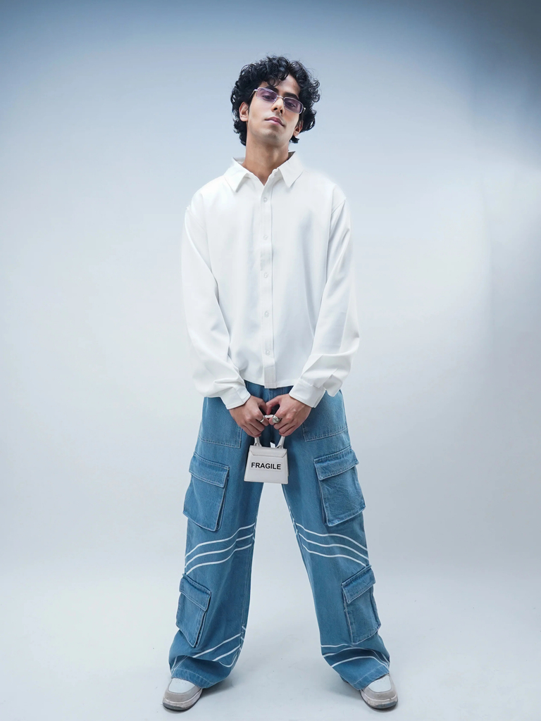 Elevate your everyday style with this classic blue denim jeans for women. Crafted from 100% cotton denim, these jeans offer a structured, wide-leg fit with high…