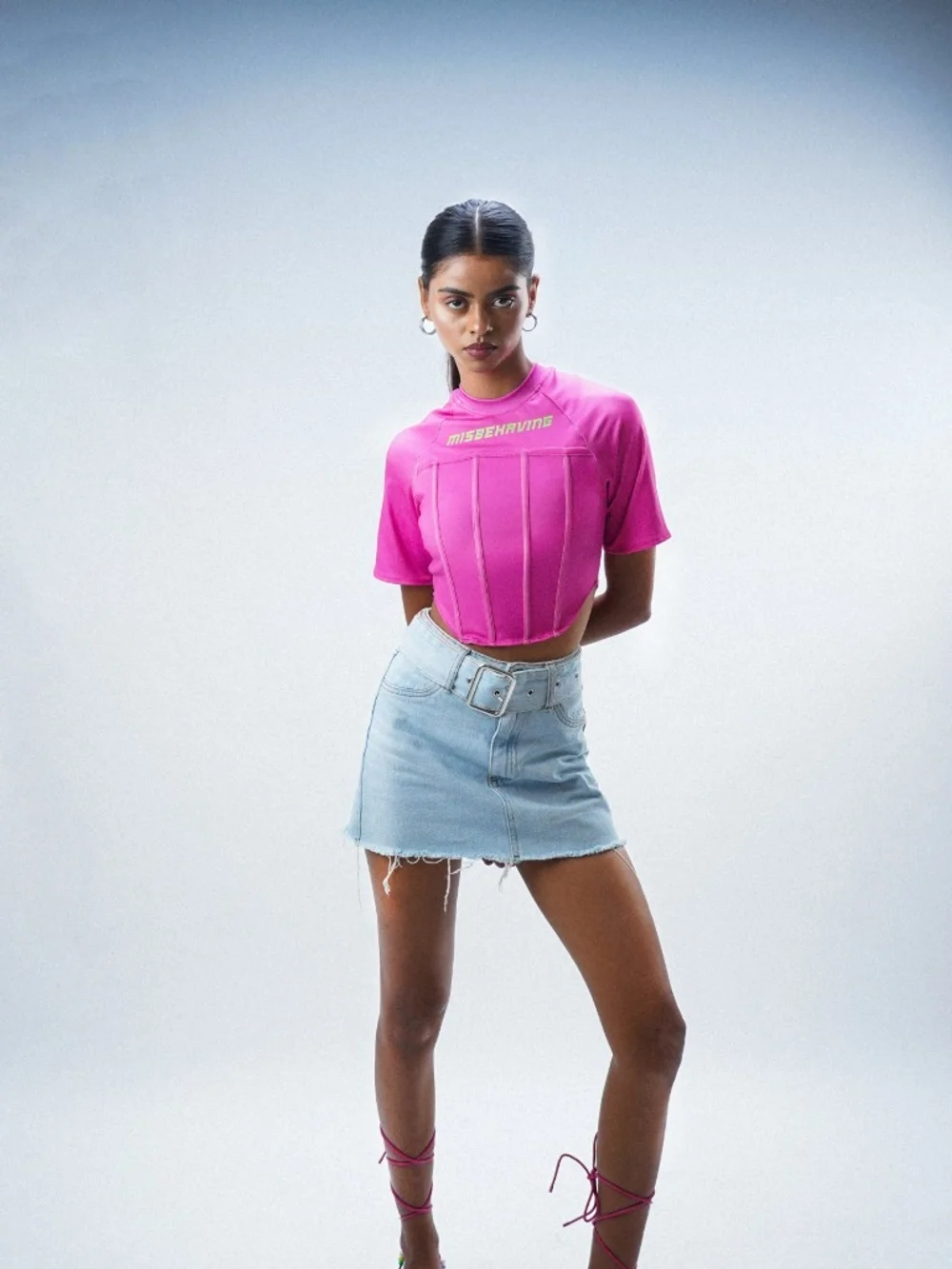 Elevate your wardrobe with this pink corset top, crafted from polyester-lycra for a comfortable yet structured fit. The boning adds a vintage flair, perfect for making a statement. Ideal for casual outings or as a chic addition to your everyday look. Pair with high-waisted jeans or a flowing skirt for a trendy ensemble. Hand wash cold or dry clean for lasting elegance.