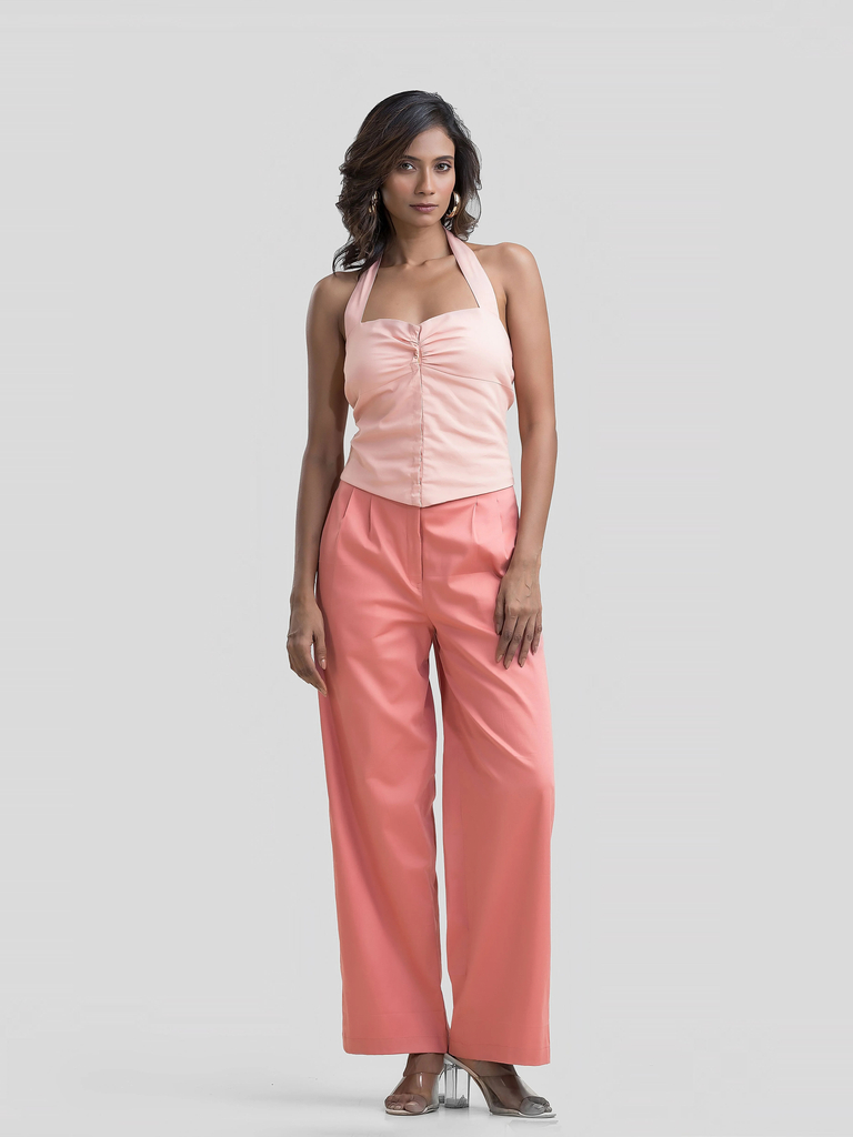 Step into summer with this chic Rouge Set from Solete Lifestyle. This pink halter neck top features a sweetheart neckline and front gathering, paired with high-…