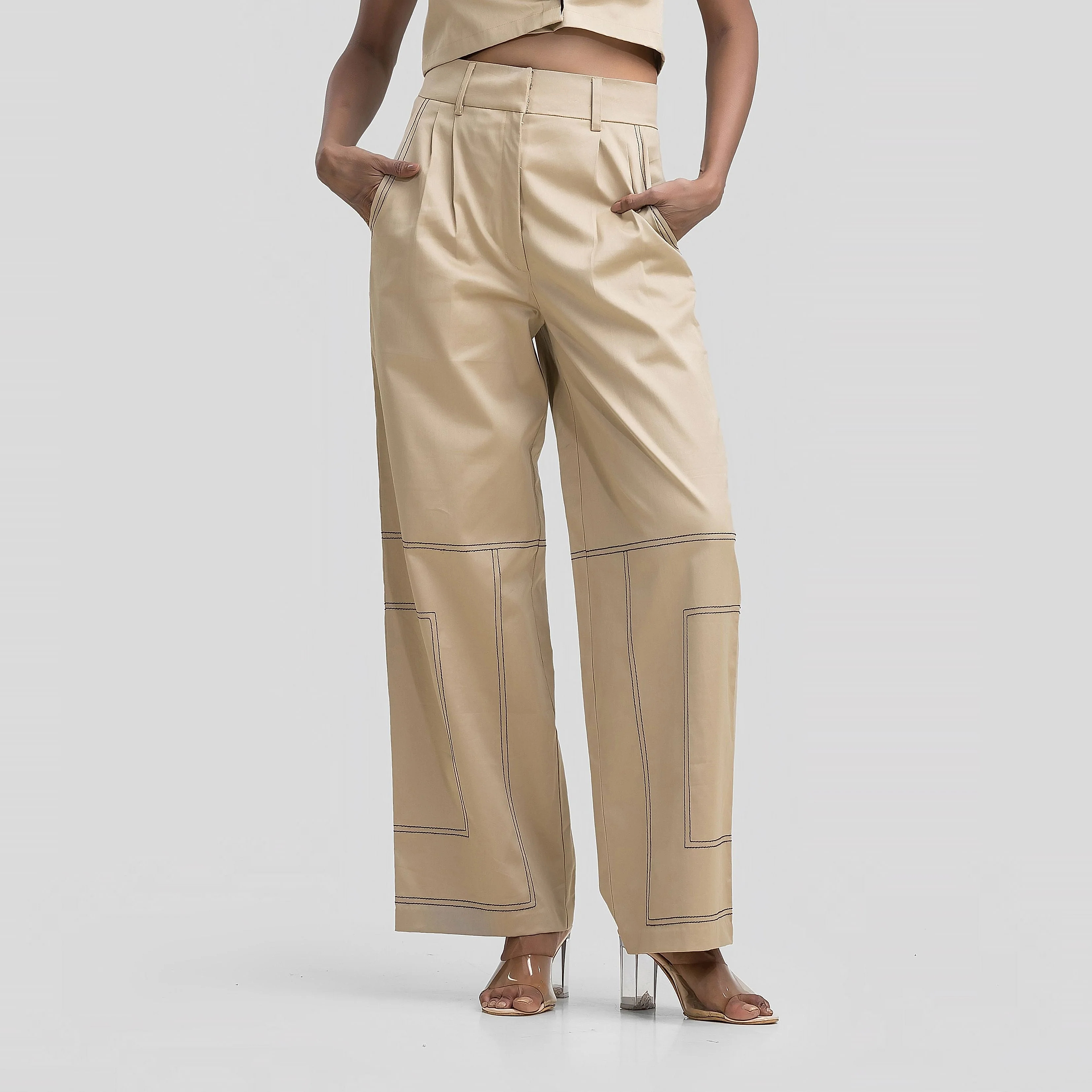 Step into summer with this high-waisted wide-leg cotton pants. Perfect for casual outings or a laid-back festival vibe, these pants feature structured stitch de…
