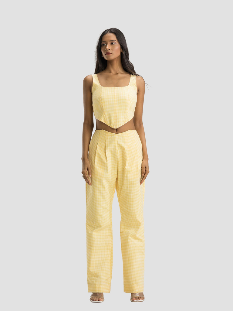 Discover the Yellow Gingham Reversible Set, a versatile and stylish ensemble perfect for any occasion. The reversible set features a chic corset top in gingham…