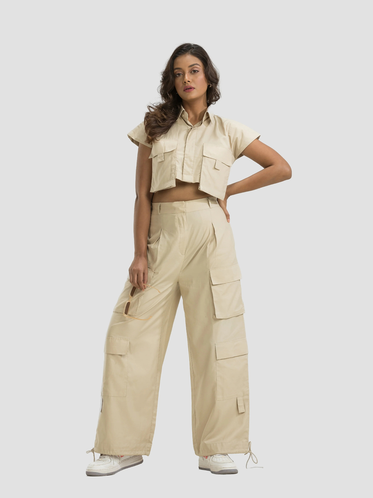 Step into summer style with the Boxy Cargo Set, perfect for casual outings or a relaxed day out. This set features a chic boxy fit crop top with two front flap…