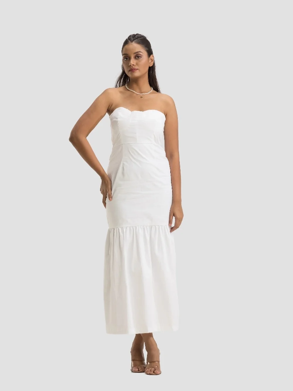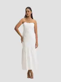 Step into summer with the Daisy Midi Dress, a cotton tube dress that flatters every figure. This fitted dress features an exposed shoulder design and a tiered flare hem that adds a touch of elegance. Perfect for casual outings, parties, or smart casual settings, it's a versatile piece that's both comfortable and chic. Pair it with your favorite heels for an effortless yet stylish look.
