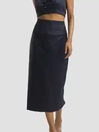 Step into elegance with our Prussian Midi Pencil Skirt, a high-waisted, fitted piece in soft cotton fabric. Perfect for a day out or office wear, its side zip and back slit ensure ease of movement. Ideal for women who love a chic, classic look, this skirt is your go-to for versatile styling. Pair it with a blouse for a polished office look or a top and sandals for a casual day out.