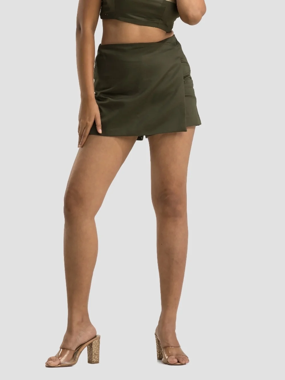 Step into effortless style with the Olive Skort, a chic blend of comfort and fashion for women. This high-waist skort features a layered wrap detail, perfect for casual outings or office wear. Crafted from soft cotton, it offers all-day comfort and a flattering fit. With an invisible side zip, it ensures a seamless look. Available in sizes XS to XL, this versatile piece is a wardrobe essential.