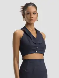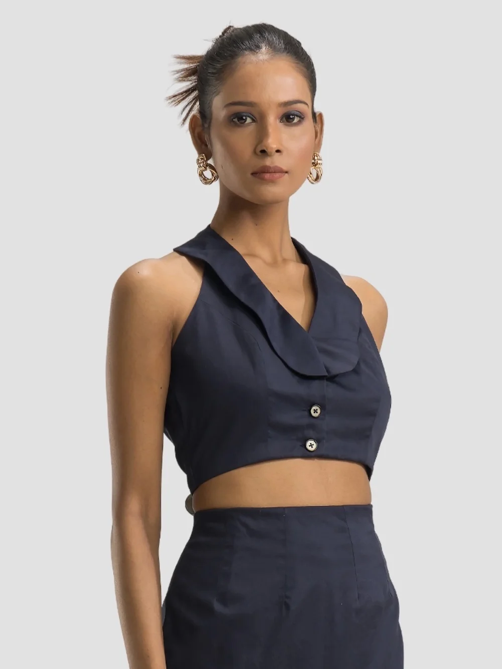 Step into summer with this Prussian Vest Top, a perfect blend of style and comfort. Made from breathable cotton, this halter neck crop top is ideal for casual outings or formal events. The fitted yet relaxed fit ensures you stay comfortable all day. Pair it with high-waisted pants or a skirt for a chic look. Easy styling tips include layering with a denim jacket or accessorizing with a statement necklace. Don't miss out on this versatile piece!