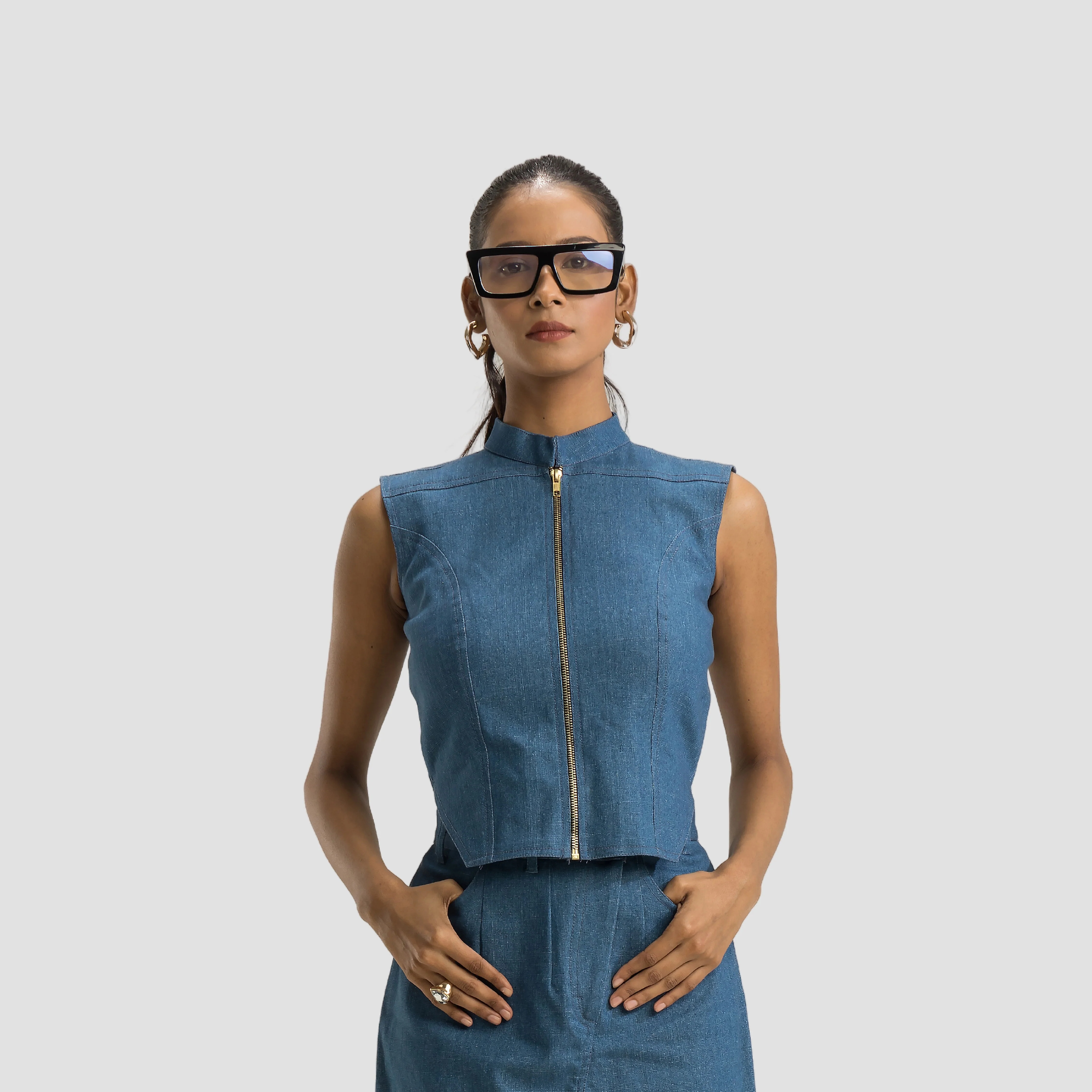 Experience the perfect blend of style and comfort with this zip up denim top for women. Crafted from durable denim, this crop top offers a medium stretch for a…
