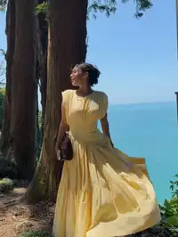 Embrace the essence of summer with this striking yellow midi dress, perfect for any occasion. Its corset-inspired waist and asymmetrical hem add a touch of sculpted elegance, making it ideal for parties, casual outings, and everyday wear. Crafted from breathable hemp-cotton, this dress ensures comfort and style for every standout moment.