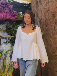 A breezy white short kurti with a flirt neck, bell sleeves, and handcrafted shell tassels — light, calming, and effortlessly beautiful for everyday or festive looks.